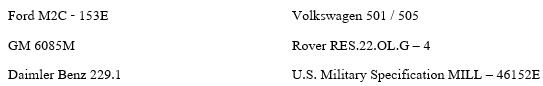 Specification MIL - L-46152D, GM8085M, Ford ESE-M2153D, Daimler Benz DB226.1