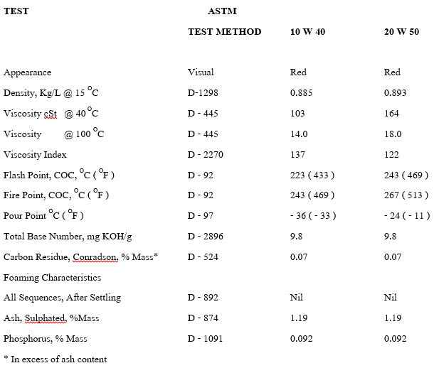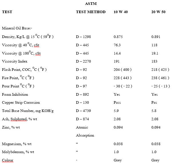 Meets and /or exceed A.P.I. SG / CD Specification, CCMC Classifications G4, PD2, D4, U.S Military