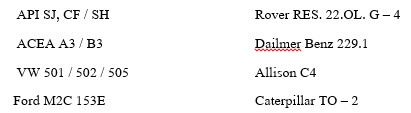 4 จังหวะ และเครื่องยนต์ดีเซลที่ใช้งานหนัก และมีสมรรถนะเหนือกว่าข้อกำหนดการใช้งานต่อไปนี้