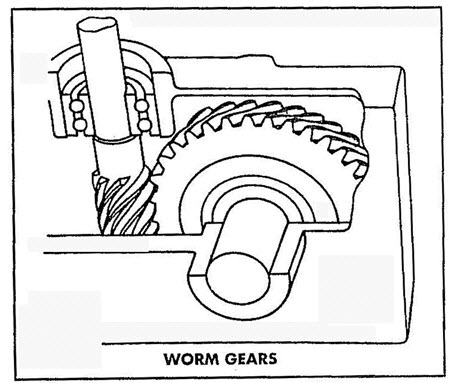 ขนาดเล็ก ( ตัวหนอน ) และเฟืองตามขนาดใหญ่ ซึ่งมีลายเกลียวตัวหนอนที่ขอบรอบนอกของเฟือง
